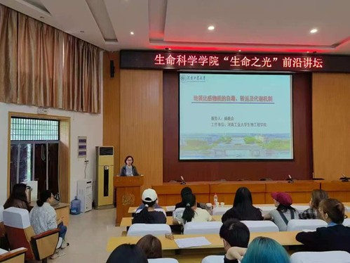 9月26日上午,应生命科学学院邀请,河南工业大学杨艳会教授莅临我校讲学,并在生物报告厅作题为“地黄化感物质的自毒、转运及代谢机制”的学术报告,学院师生200余人参加。报告会由生命科学学院段红英教授主持。