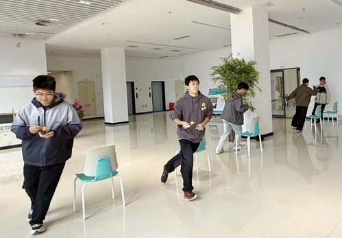小小的乒乓球在筷子间灵巧传递,每一次精准交接,都串联起同学间的信任与协作,现场此起彼伏的加油声、清脆爽朗的欢呼声与笑声交织回荡,筷子夹乒乓球接力赛不仅考验着同学们的手部稳定性与专注力,更对团队成员间的默契配合提出了更高要求。参赛学子们全神贯注,或稳步前行,或快速衔接,在一次次尝试与配合中,既体验了运动的乐趣,更深刻体会到团结协作的重要意义,展现出蓬勃向上的青春风貌。