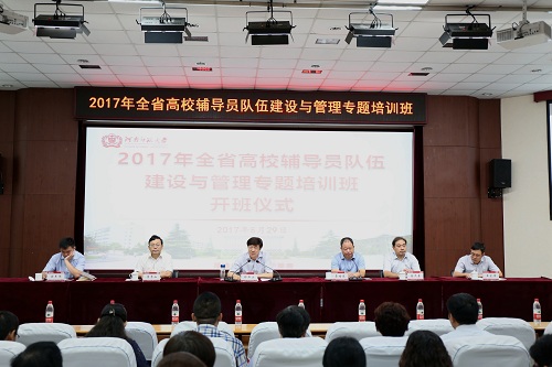 8月29日至31日,2017年全省高校辅导员队伍建设与管理专题培训班在我校举办。省委高校工委专职副书记、省教育厅党组副书记郑邦山,省教育厅思想政治工作处处长李培俊、我校副校长李雪山、校工会主席岳杰勇出席开班仪式。来自全省126所高校的党委研工部部长、学工部副部长、学生处副处长参加本次培训班。