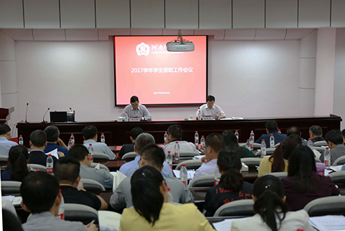 学生资助服务中心主任赵红杰就我校学生资助工作进行详细介绍。我校现有68.3%的学生来自农村,城镇下岗职工子女占学生总数的10.1%,大多数家庭经济贫寒,收入来源少,从而使我校困难学生所占比例占到学生总数的29.4%,高于其他省属高校。经过大家多年来的共同努力,现有的资助工作机构健全、职责明确、制度完善、人员精干,形成了奖、助、贷、勤、减、免、补、绿色通道等涵盖15项资助措施的多元化资助体系,做到了困难学生全覆盖,保证了每一位家庭经济困难学生顺利入学,不让一名学生因家庭经济困难而失学。2016年我校共资助学生25187人次,资助总金额9642.23万元。在2015、2016年度资助工作检查考核中,我校再度被评为“河南省资助工作优秀单位”。在取得成绩的同时,赵红杰指出我校下一步的工作思路是精准化资助、纵深化育人、规范化管理和多元化获取,由生活保障性资助向技能发展性资助转变。他强调资助工作要做到“六个规范”即规范管理制度、规范监管责任、规范资助程序、规范资金管理、规范信息管理、规范机构队伍建设。并就修订、新增的6个学生资助文件进行重点解读。