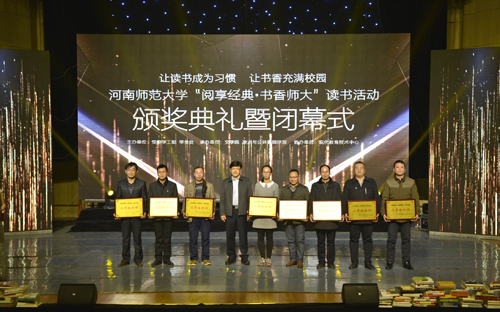 感悟时代经典,共筑书香师大。12月13日晚,由党委学工部、学生处主办,文学院、政治与公共管理学院承办,现代教育技术中心协办的“阅享经典•书香师大”读书活动颁奖典礼暨闭幕式在帕瓦罗蒂音乐厅举行。中国著名作家、中国人民大学文学院教授阎连科,校党委书记郑邦山,副校长李雪山,党委办公室、组织部、学工部、就业创业指导服务中心、文学院、政治与公共管理学院等相关部门负责人出席颁奖典礼并为获奖单位和选手颁奖。各学院副书记、辅导员及五百余名学生代表共同参加了颁奖典礼。
