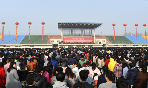 3月26日上午,伟德官网下载苹果版“学在师大,心系国家”学风建设年启动仪式暨2015年度学生系统先进集体、先进个人表彰大会在塑胶田径场隆重举行。校党委书记郑邦山,副校长李雪山、马治军,纪委书记张现周,工会主席岳杰勇,校长助理朱华北出席大会并在主席台就坐。各学院党委(党总支)书记或院长、学风建设领导小组成员、各学院党委(党总支)副书记、辅导员、各学院获奖学生代表、2013级和2014级学生干部、2015级全体学生共10000余人参加了大会。大会由校党委副书记史战芳主持。