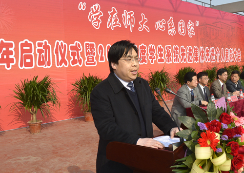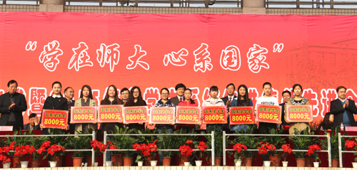 李雪山宣读了《“学在师大,心系国家”学风建设年实施方案》,马治军宣读了表彰决定及名单。8个学生工作先进单位、39个先进班集体、7164名先进个人受到表彰。在欢庆的音乐声中,校领导为先进集体及个人代表颁奖。