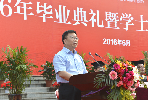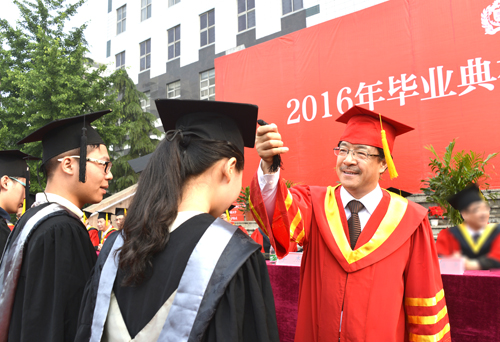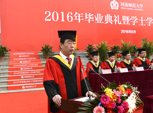 闲云河影日悠悠,物换星移几度秋。6月8日上午,我校2016届学生毕业典礼暨学士学位授予仪式在图书馆广场前隆重举行。校领导郑邦山、常俊标、史战芳、孙先科、李雪山、马治军、张现周、岳杰勇出席典礼,各学院书记(院长)、副书记、教师代表和各职能部门负责人及2016届毕业生参加了典礼。典礼由副校长李雪山主持。