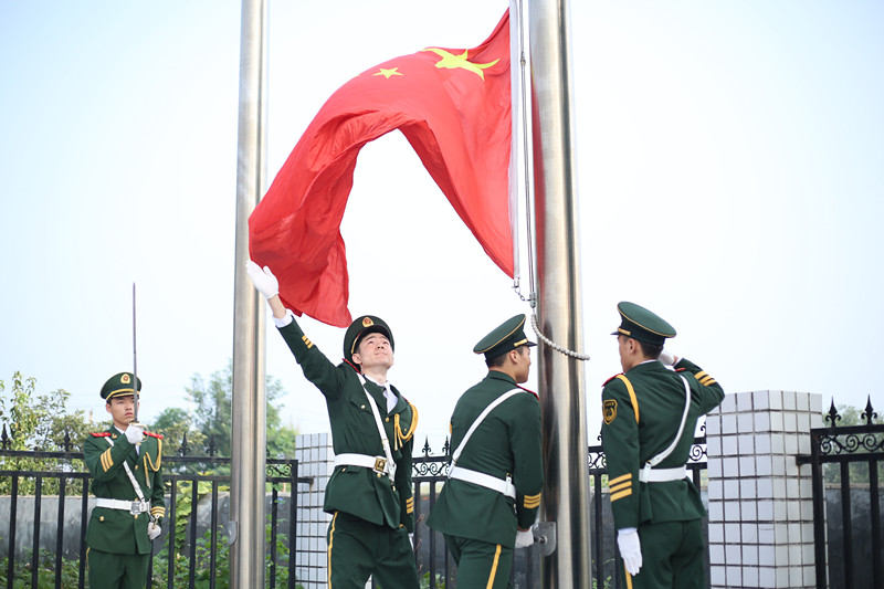 8:30分,在响亮的口号声中,雄姿英发的国旗护卫队队员迈着整齐的步伐走向升旗台,伴随着铿锵有力的《义勇军进行曲》,鲜艳的五星红旗冉冉升起。全体师生怀着崇敬的心情,面向国旗、行注目礼。2017级新生开学典礼正式开始。