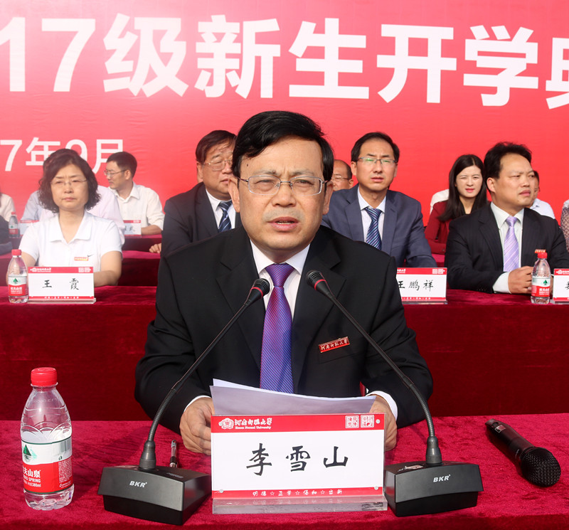 校长常俊标代表学校向2017级新生表示热烈的欢迎和祝贺,向辛勤培育他们的家长和老师表示崇高的敬意和衷心的感谢。常俊标从历史与底蕴、责任与担当、实力与影响、温度与情怀等四个角度,全方位地向新同学介绍了师大的颜值与气质。他希望全体新生尽快了解师大、融入师大,能够传承和发扬师大的光荣传统,立志成才、勇于担当,在融入与传承中创造未来,在融入与传承中成就梦想,用坚持不懈的辛勤努力,书写自己闪耀璀璨的青春年华。