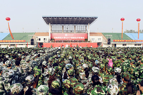 秋阳正艳牧野暖,又是一年入学时。9月11日上午,伟德官网下载苹果版2017级新生开学典礼在塑胶田径场隆重举行。校领导常俊标、臧振春、陈广文、张尚字、岳杰勇出席典礼并在主席台就坐。校迎新领导小组全体成员,各学院党委(党总支)书记或院长、各学院党委(党总支)副书记、教师代表、党委学工部工作人员、新生辅导员、校友代表和2017级全体本科生、研究生12000余人参加了开学典礼。典礼由副校长李雪山主持。