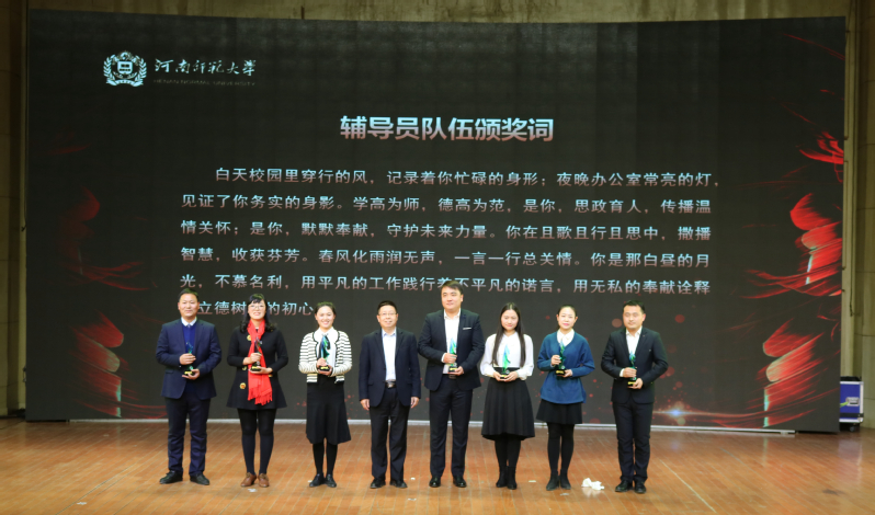 学高为师,德高为范,思政育人,默默奉献,且歌且行且思中,他们诠释着立德树人的初心。精彩绝伦的师生话剧《情注芳华》向我们展示了兢兢业业,有血有肉、有情有义的优秀辅导员老师典型,他们柔情似水、热情如火,在助力学生成长成才中勇于付出、无怨无悔。在访谈环节中,葛照金、王秀杰、唐新三位老师作为现场嘉宾畅谈经验,吐露心声,诠释了我校辅导员以崇高的使命责任、赤诚的师者匠心、出色的修养学识,扎根育人一线、传递爱生情怀的感人形象。副校长马治军为优秀辅导员代表颁奖。