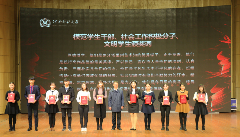 本次典礼中,自2016年1月到2017年8月我校共评选出三好学生标兵1117人、三好学生3229人、模范学生干部1259人、社会工作积极分子347人,本次表彰大会共有5个优秀思政品牌工作、8个学生工作先进单位、7名优秀辅导员代表、44个先进班级体获得奖项。学生工作系统将继续发挥榜样师大的作用,聚焦学生工作质量提升和内涵建设,全面提高学生工作科学化、专业化、精细化水平,为服务学生全面成长成才、深入贯彻落实党的十九大会议精神“优先发展教育事业”贡献力量。