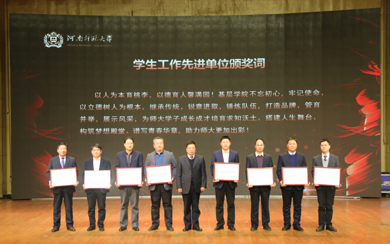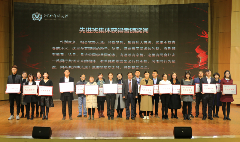 学在师大,放飞梦想。师大学子团结互助,积极进取,涌现出一大批省级校级先进班集体。颁奖分四批次进行,由校党委副书记臧振春依次授奖。学生活动的品牌载体建设是将党的教育方针在高校落地生根、开花结果的过程与体现。一年来,我校通过实施品牌驱动战略,凝聚优秀资源,学工系统品牌创建成绩斐然,继续领跑全省高校,为师大学子成长成才培育求知沃土、搭建人生舞台,助力青年学子更加出彩。各学院立足师大,植根学生,谋划推出了一大批体现师大实力、彰显师大颜值的优秀学生活动品牌,为促进师大学子全面发展、繁荣校园文化做出了应有贡献。访谈环节中,嘉宾陈勇、包晓光两位老师简要介绍了基层学院推进学生工作发展、谋划活动载体抓手、促进学生成长成才的经验与体会。校长常俊标为2016年度河南省高校思想政治工作优秀品牌获奖者和学生工作先进单位依次授奖。典礼在慷慨激昂的集体朗诵《榜样青春》中落下帷幕。