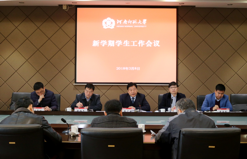 3月8日上午,我校2018年度新学期学生工作会议于勤政楼第三会议室召开。校党委副书记陈广文,副校长李学志出席会议,各学院党委(总支)副书记、学生处全体工作人员参加会议。会议由学生资助服务中心主任、党委学工部副部长、学生处副处长赵红杰主持。