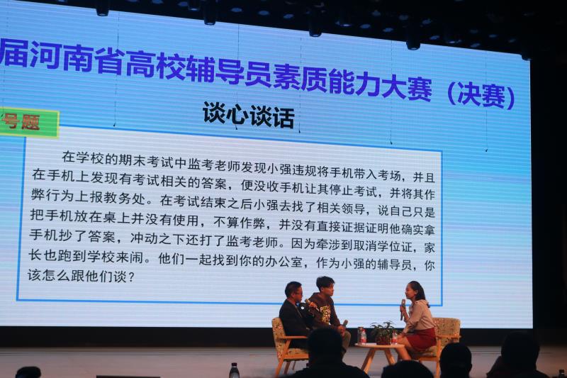 4月25日—27日,由中共河南省委高校工委、河南省教育厅主办的第七届全省高校辅导员素质能力大赛在南阳师范学院举办,我校代表团成绩斐然。商学院辅导员郑园园荣获特等奖第5名,数学与信息科学学院辅导员刘久凌荣获一等奖,我校荣获优秀组织奖。