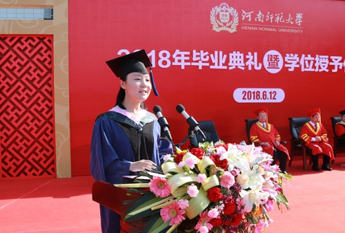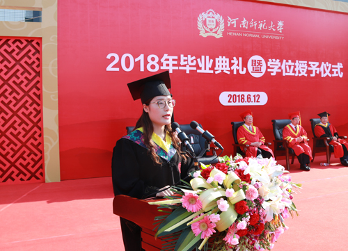 毕业研究生代表、马克思主义学院高湘涛,毕业本科生代表、电子与电气工程学院韩岩分别发言,表达对于母校和师长的感谢,倡议毕业生们秉承师大精神,牢记时代使命,做勇于担当的师大青年。教师代表、环境学院皮运清老师寄语毕业生,希望大家铭记校训,怀揣梦想,修德进学,勇于肩负历史责任,为学校增添光彩。