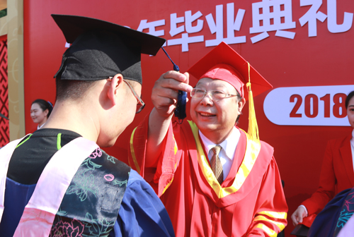 校党委书记赵国祥为毕业生代表拨苏正冠