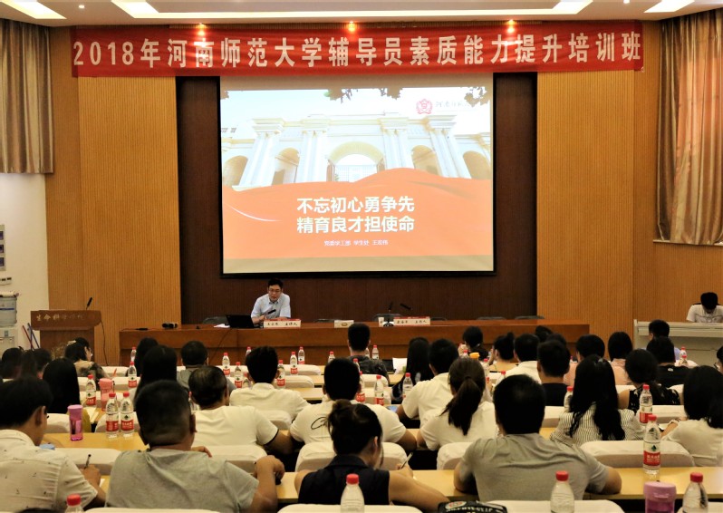 为进一步加强我校辅导员队伍建设,提升辅导员的工作能力和职业素质,8月29日至30日,由党委学工部 学生处主办的2018年辅导员素质能力提升培训班在我校生物报告厅举行。党委学工部学生处处长王宏伟、新乡市公安局国保与反恐支队政委张超喜、校保卫处副处长田歧瑞、相关科室负责人等开展学生工作专题讲座,我校专、兼职辅导员100余人参加此次会议,培训会由学生处副处长康海军主持。