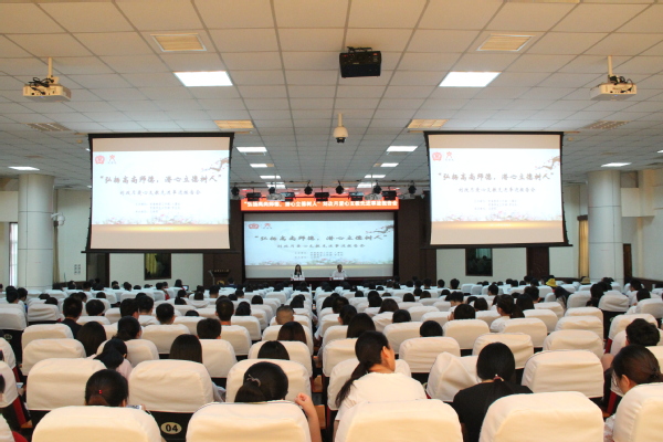 在第34个教师节到来之际,为学习贯彻落实党的十九大精神,落实教育部关于师风师德建设的部署,弘扬尊师重教的传统。9月9日上午,由党委教师工作部 人事处、党委学生工作部 学生处主办,文学院承办的“弘扬高尚师德,潜心立德树人”刘改月爱心支教先进事迹报告会在物理北楼三楼报告厅举行。教师代表、在校生代表300余人共同参加了本次报告会。