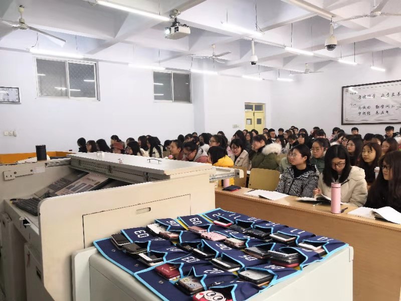 学院通过课堂研讨,采取中心发言与集中讨论相结合的形式,正式启动“无手机课堂”活动。学院根据不同课堂需求,集中统计外国语学院需用手机课程汇总表,针对无手机课堂,已为学生私人订制多功能、可移动手机收纳袋。通过制度建设和活动倡导两手抓,双管齐下引导学生拒绝课堂“低头族”。