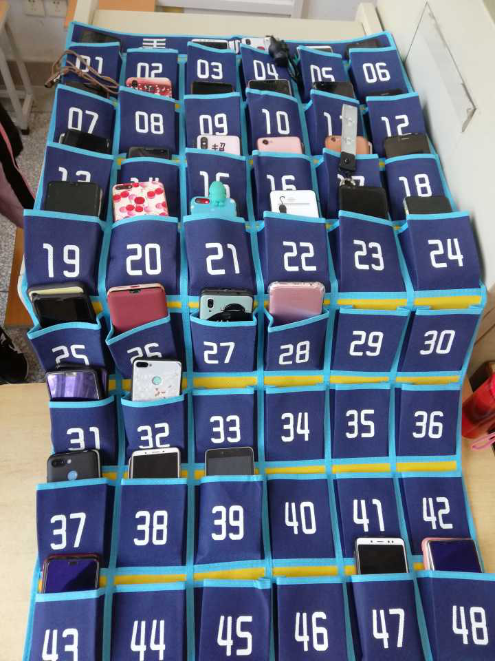 学院团委给每个班级都发放了独立手机收纳袋,收纳袋按学号顺序相应排列,使每位同学都有自己专属的号码。为督促同学们上交手机,院学生会安排自律委员不定期抽查同学们手机上交情况,定期组织开展“无手机课堂”活动经验交流总结会,每班派出一名代表,互相学习经验教训。为督促同学们上课认真听讲,院团委要求团干部在黑板上方用粉笔写上“无手机课堂”,时刻提醒同学们与手机告别,与书本同行。