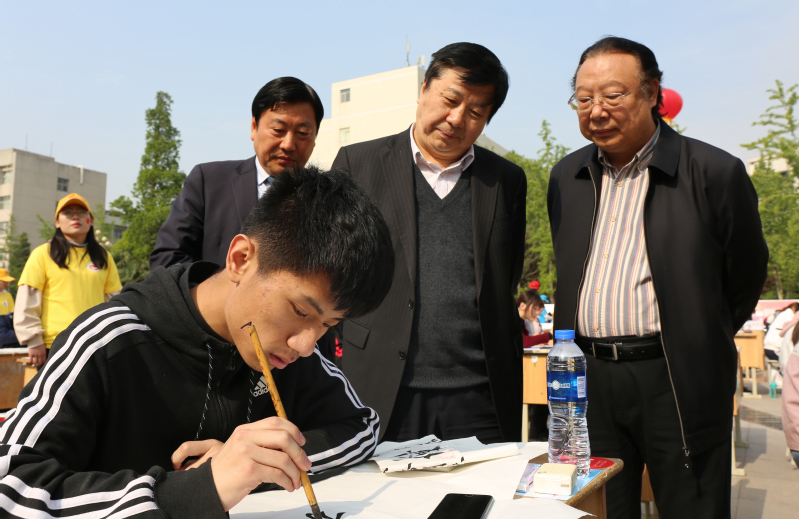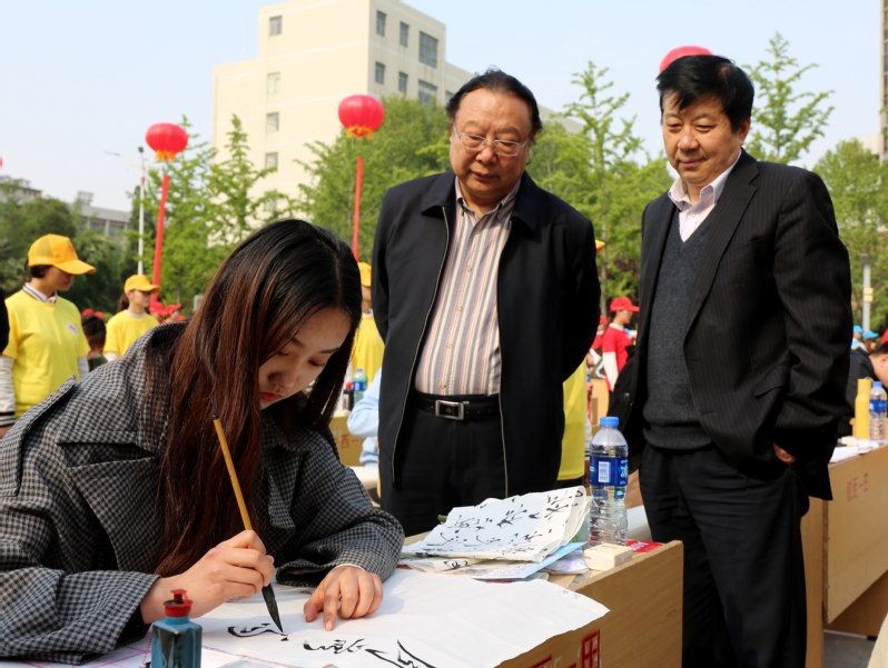 笔笔隽永展师大风采,字字凝情颂时代赞歌。4月20日上午,我校第二十六届大学生基本技能大赛开幕式暨“三笔字”比赛在图书馆前广场举行。本次大赛由党委学工部 学生处主办,商学院、环境学院、电子与电气工程学院承办,中国书法家协会副主席宋华平,党委书记赵国祥,党委副书记陈广文,党委常委、副校长李学志出席开幕式。大赛领导小组成员单位的相关负责人,各学院党委(党总支)副书记、团委书记和辅导员,540位参赛选手以及320名志愿者和工作人员参加开幕式。开幕式由陈广文主持。