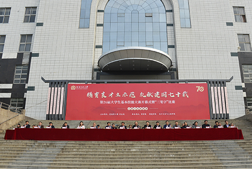 我校大学生基本技能大赛已经连续举办了26年,为广大青年搭建了展示才能、放飞梦想的广阔平台,参与人数累计达到5万余人,不仅提升了学生的综合素质和核心竞争力,更极大地增强了思想政治教育的吸引力和感染力。本届大赛恰逢新中国成立70周年,以“精育良才立示范 礼献建国七十载”为主题,旨在深入贯彻学习习近平新时代中国特色社会主义思想和全国教育大会精神,激励广大学子坚定理想信念、厚植爱国情怀、勇担时代使命、矢志艰苦奋斗,在推进学校高水平大学建设的新征程中建功立业,用实际行动向新中国70周年华诞献礼。