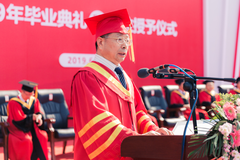 6月12日上午,我校2019届学生毕业典礼暨学位授予仪式在图书馆前广场隆重举行。校领导赵国祥、常俊标、臧振春、陈广文、李学志、李雪山、马治军、张尚字、岳杰勇、刘玉芳出席典礼。各学院书记(院长)、副书记、教师代表、毕业班辅导员、校友代表、毕业生家长代表及2019届全体毕业生8900余人参加了典礼。典礼由副校长李学志主持。