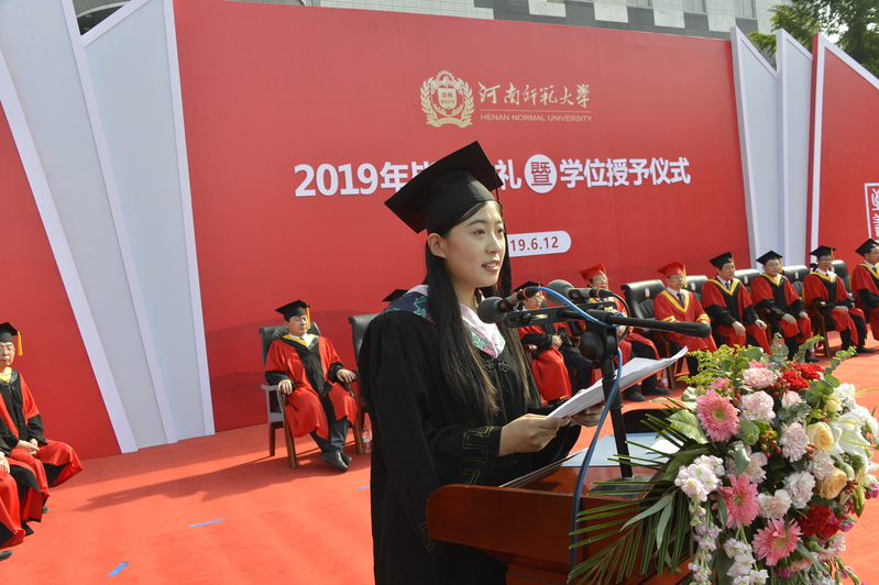 毕业研究生代表、法学院赵玥彤,毕业本科生代表、文学院康睿,表达对于母校和师长的感谢,希望大家将师大精神熔铸在生命中,在未来的各个领域发光发热,绽放光彩。教师代表、国家优青化学化工学院仉华寄语毕业生,希望同学们坚守师大品格,担当时代使命,锤炼人格,砥砺人生,不断迈向人生新境界。