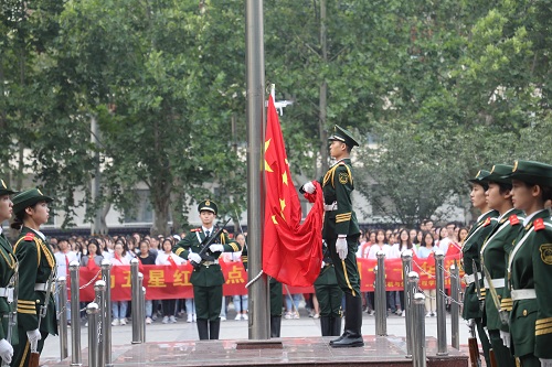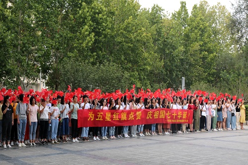 壮丽七十载,奋进新时代。习近平总书记在纪念五四运动100周年大会上强调:“新时代中国青年要以一生的真情投入、一辈子的顽强奋斗来体现爱国主义情怀,让爱国主义的伟大旗帜始终在心中高高飘扬!”恰逢新中国成立70周年,同学们共拉“为五星红旗点赞,庆新中国七十华诞”红色条幅,手持鲜艳小红旗,深情告白祖国母亲,为其献上真心祝福。爱国主义自古以来就流淌在中华民族血脉之中,是中国人民和中华民族维护民族独立和民族尊严的强大精神动力,历年来,我校高度重视学生的爱国主义教育,坚持举行新学期升国旗仪式,鼓励学生以昂扬的斗志、坚定的信念投入到新学期的工作、学习和生活中,引导青年学生树立中国特色社会主义共同理想,牢记使命,接力奋进,在与祖国共奋进中谱写壮丽的青春之歌。