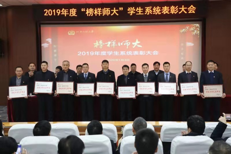 党委常委、副校长李学志宣读了2019年度学生工作表彰通报。校领导分别为国家奖学金获得者、国家级和省级竞赛获奖者等先进个人、先进学生工作者、学生先进集体、先进单位等颁奖。商学院学生郑文卓、生命科学学院辅导员王芳、法学院党委副书记葛照金等分别作为获奖学生代表、先进学生工作者代表、先进单位代表发言。