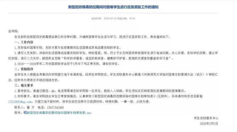 做好新型冠状病毒防控期间对困难学生进行应急资助工作