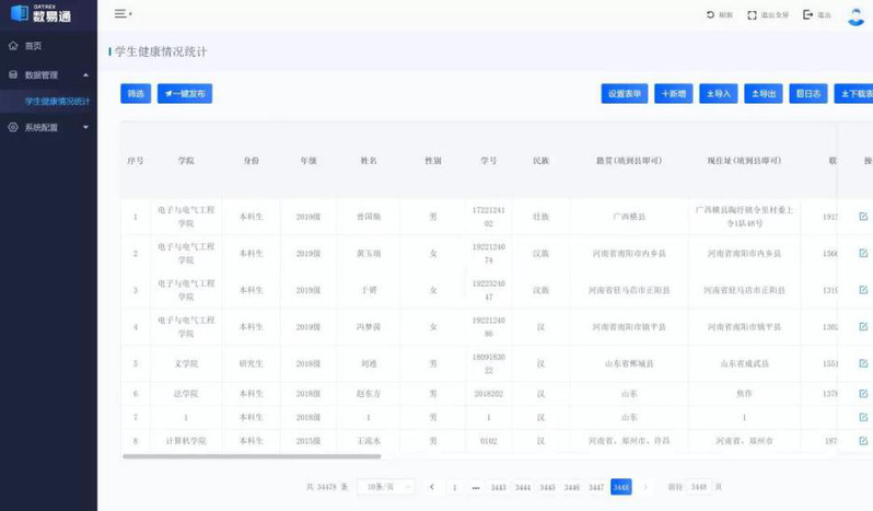 1月29日,在全校学生中开展疫情防控信息统计工作,共得到学生有效反馈信息34445条,为我校把控现状提供必要的基础数据。1月30日,将学生疫情防控信息统计数据报送校办。