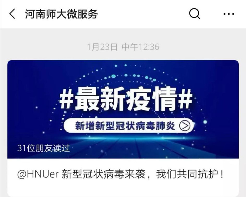 1月23日上午,在学生处微信公众号、河南师大微服务微信服务号上推送关于新型冠状病毒知识及防范措施。