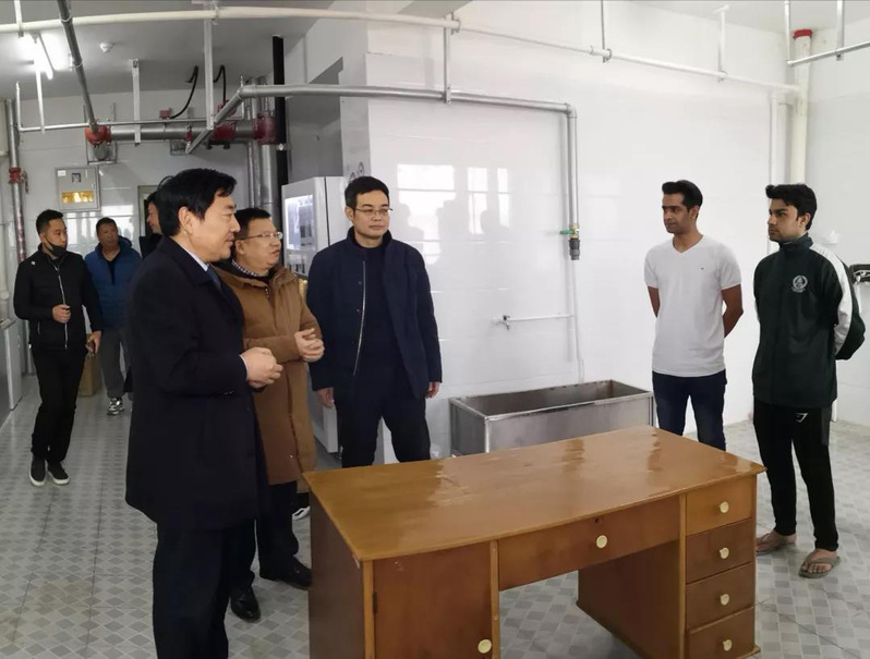 1月24日上午,党委学工部部长 学生处处长王宏伟陪同校党委副书记陈广文书记看望留校外国留学生,要求学生加强疫情防护意识并实施相应的保护措施。