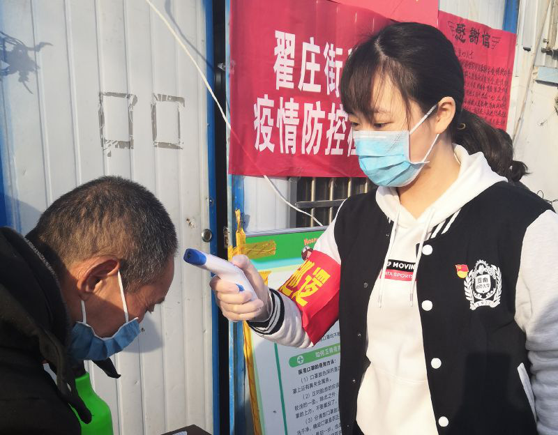 2019级学生刘金宏主动请缨成为了一名村镇志愿者,积极投入当地志愿服务工作。在志愿服务期间,每天天一亮,她就前往信阳市黑龙潭村卡点参加执勤,对进出车辆和人员进行体温检测和身份登记,同时对进出的村民进行疫情防控知识宣传。她谈到,“防控疫情是我们每一个有志青年的责任,能担任志愿者,为村集体做出一点贡献是我们的荣幸。”