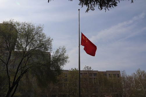 4月4日,我校降半旗默哀活动在国旗广场举行。校党委副书记陈广文,党委常委、副校长李学志,党委常委、副校长马治军,校纪委书记张尚字,各部门负责同志以及全体在校值班人员参加了此次默哀仪式。