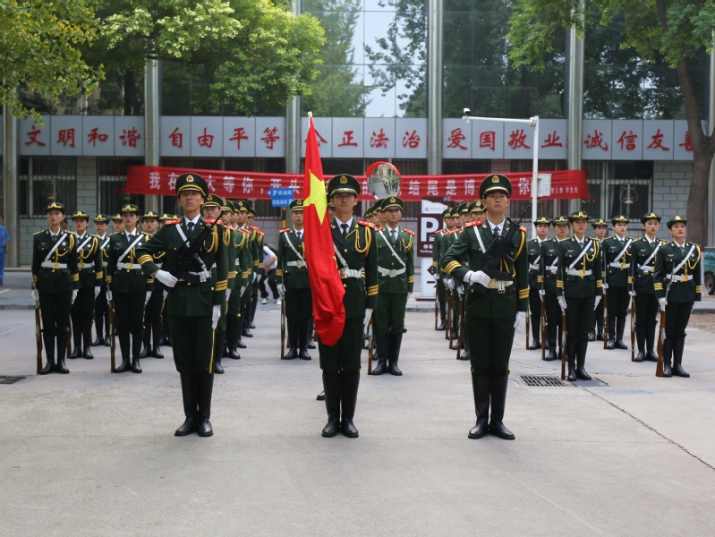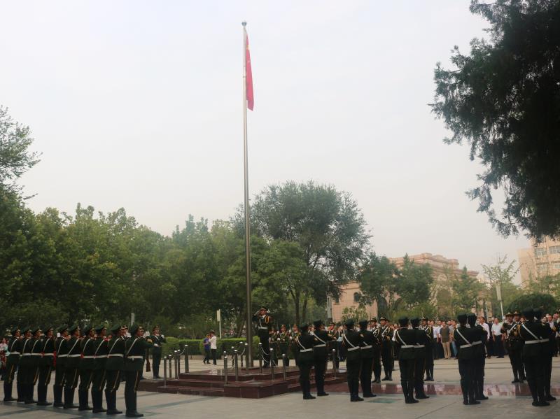 7时整,升国旗仪式正式开始。伴随着雄壮激昂的《义勇军进行曲》,五星红旗在国歌声中冉冉升起,迎风飘扬在国旗广场的上空。全体师生庄严肃立,行注目礼,心怀对祖国母亲的无限热爱。