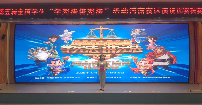 第五届全国学生“学宪法、讲宪法”活动由河南省教育厅、河南省司法厅主办,华北水利水电大学承办。据悉,自活动通知下发后,大赛共吸引了全省百余所学校170名演讲选手参加,向俊颖在法学院赵东方老师的指导下,围绕“尊崇宪法、学习宪法、遵守宪法、维护宪法、运用宪法”的主题,一路过关斩将,与来自全省其他市其他高校的多名选手激烈角逐,凭借扎实的法学理论功底和稳健自信的台风荣获省二等奖。