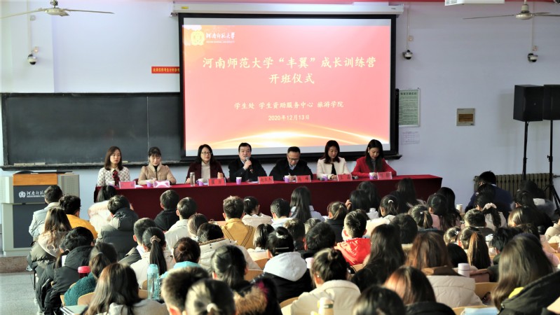 12月13日上午,我校“丰翼”成长训练营开班仪式在新554教学楼成功举行。党委学工部副部长、学生处副处长、学生资助服务中心主任赵红杰,旅游学院党委书记冯峰,训练营授课教师以及300余名学生参加仪式。仪式由旅游学院党委副书记翟方主持。