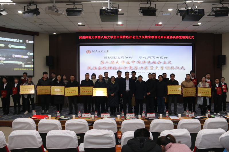 颁奖仪式上,党委统战部副部长张晨寒宣读获奖名单。在第八届大学生中国特色社会主义民族宗教理论知识竞赛现场赛中,3个团队获一等奖、3个团队获二等奖、6个团队获三等奖;在省级网络答题中,共有11个团体一等奖、8个团体二等奖、5个团体三等奖;在主题征文活动中,共有100名学生获得征文奖;最终有十一个学院获得优秀组织奖。现场领导为获奖学院和学生颁发奖牌和证书。
