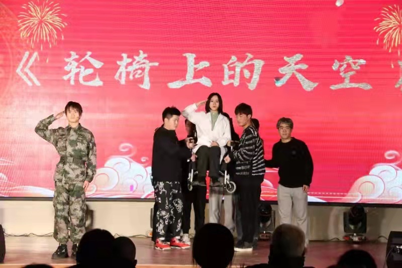 活动伊始,裴春亮满怀深情地对师大学子十一年来的陪伴与坚守表示感谢,他指出正是师大学子的殷殷育书行,将经典文化引入基层教育,将红色基因融入乡村建设,为裴寨增添新的活力。活动节目类型涵盖相声、情景剧、诗歌朗诵等。其中,情景剧《轮椅上的天空》讲述一名医生在与新冠肺炎疫情斗争过程中失去双腿,但在所救助患者的帮助下重拾信心回到工作岗位的励志故事,展现了新时代医务人员的责任与担当。由领航者赵丽杰等人带来的节目《祖国颂》在朗诵中缅怀岁月、讴歌历史、赞颂伟大的祖国,情绪充沛而又饱含深情,赢得在场观众的阵阵掌声。