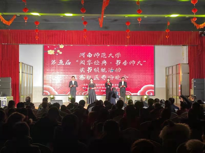 扬帆书舟出校园,启航引领开书源。12月18日,由党委学工部 学生处主办,政治与公共管理学院承办,裴寨社区协办的第五届“阅享经典·书香师大”之“读书领航”活动的40余名队员走进河南省辉县市张村乡裴寨社区,开展“读书领航”活动。裴寨社区党总支书记、春江集团党委书记裴春亮,党委学工部 学生处、政治与公共管理学院相关负责人,裴寨社区村“两委”成员及裴寨村民观看裴寨社区专场晚会。
