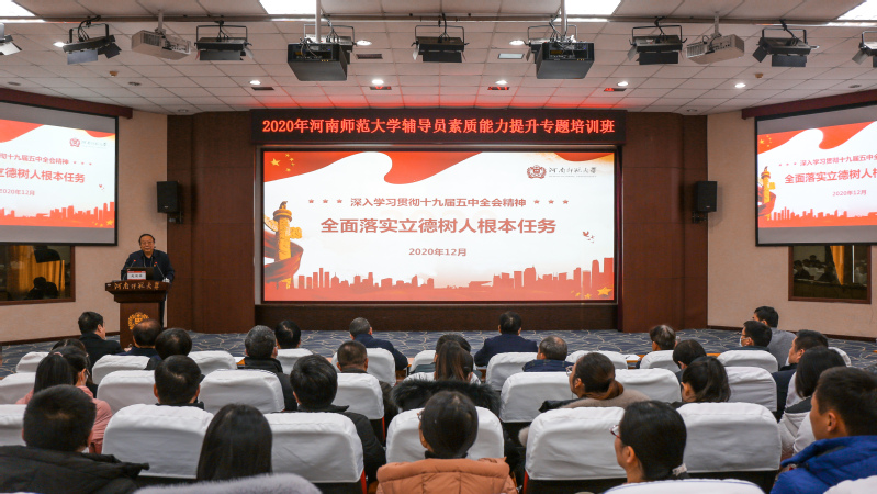根据年度培训计划,我校2020年辅导员素质能力提升培训班12月24日至25日在物理北楼三楼报告厅举行。校党委书记赵国祥、校党委副书记陈广文、校党委副书记梅宪宾出席,党委办公室、学工部、校团委、心理健康教育中心等职能部门负责人、各学院(部)副书记、专兼职辅导员及未来学院学员等300余人参会。