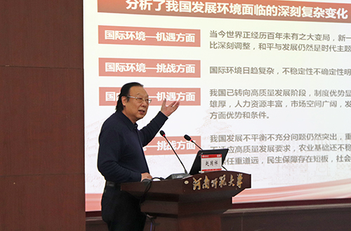 赵国祥做专题辅导报告。围绕“深入学习党的十九届五中全会精神 全面落实立德树人根本任务”主题,结合自身工作经历,赵国祥从“学习贯彻党的十九届五中全会精神”“准确把握高质量教育体系建设核心要义”“在新征程中贡献青春力量”三个方面,详细阐述了党的十九届五中全会的精神内涵,并对高质量教育体系建设进行了深入解读。赵国祥勉励全校政工干部要政治过硬,用初心砥砺信仰,牢记“为党育人 为国育才”使命,秉承“精育良才 教育报国”初心,落实立德树人根本任务;要本领过硬,用理论坚定信念,善于分析研判,精通工作业务,强化学习意识;要锐意进取,用实践坚定信心,敢于迎难而上,创新工作路径,增强实践锻炼。