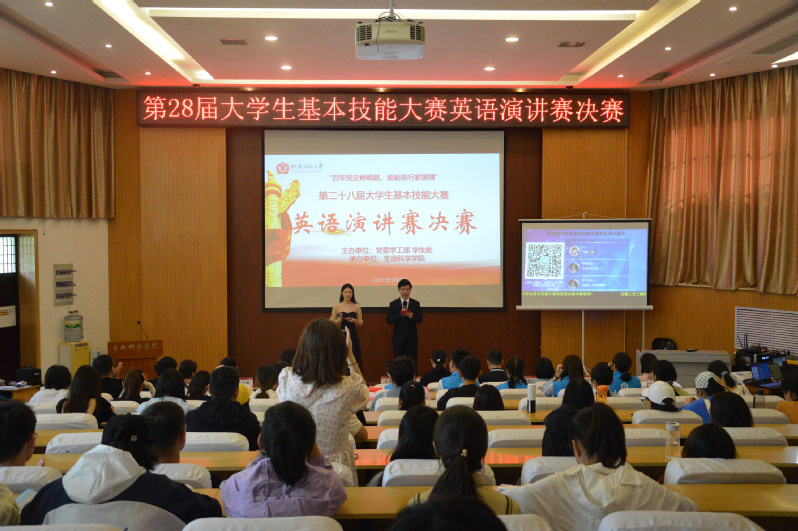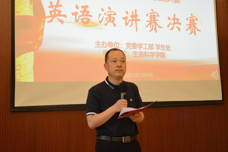 5月9日,由生命科学学院承办的“百年党史峥嵘路,砥砺前行家国情”第二十八届大学生基本技能大赛之英语演讲比赛决赛在生物报告厅成功举办,党委学生工作部副部长、学生处副处长蒋晋光,生命科学学院党委副书记朱国超,各学院团委书记到场参加活动,本次决赛由外国语学院五位专业老师担任评委,各学院学生代表100余人参加活动。