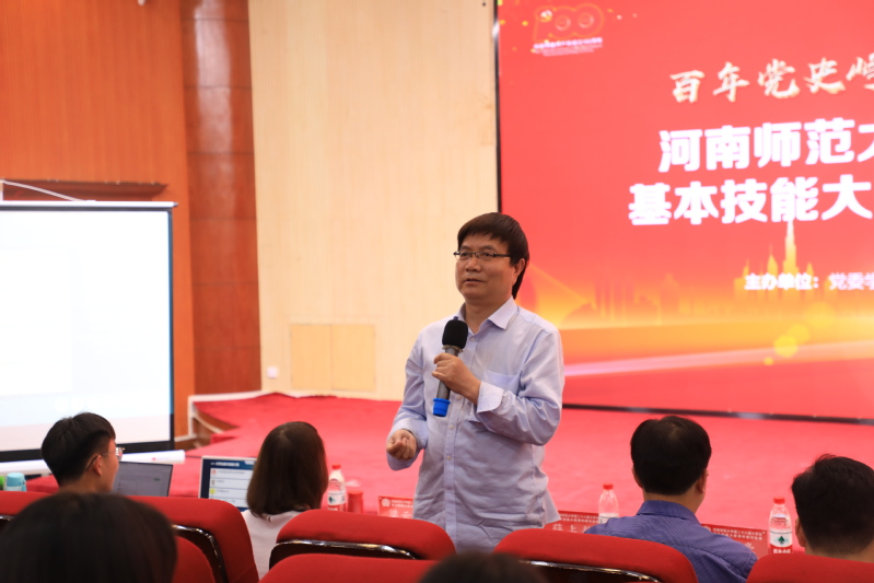 比赛以“百年党史峥嵘路,砥砺前行家国情”为主题,23位进入决赛的选手分别从“庆祝中国共产党成立100周年”“学习党史国史”“弘扬抗疫精神”等不同角度设计课件内容,并以新颖独特的设计技巧展示出来,各参赛作品别出心裁,图文并茂,各具特色。比赛期间,由音乐舞蹈学院学生带来的快板《红旗向党》、琵琶重奏《梦入江南》,赢得了现场观众阵阵掌声。最后,全国模范教师、计算机与信息工程学院教授、博士薛占熬老师分别从制作软件、制作内容、视觉效果等方面对参赛作品进行了精彩点评。
