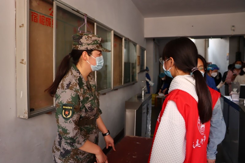 近日,一群身穿绿色军装的志愿者一直忙碌在我校学生核酸检测工作一线,他们是我校退役复学大学生。