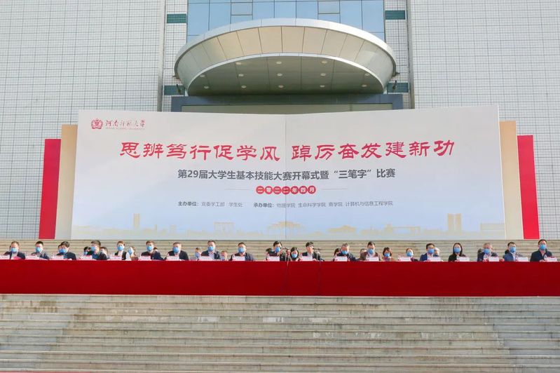 献礼新百年,喜迎二十大。4月23日上午,我校第二十九届大学生基本技能大赛开幕式暨“三笔字”比赛在图书馆前广场举行。大赛由党委学工部、学生处主办,物理学院、生命科学学院、商学院、计算机与信息工程学院承办。校党委副书记陈广文出席开幕式并致辞,大赛领导小组成员单位负责人,各学院(部)党委(党总支)副书记、团委书记、辅导员、参赛选手、志愿者参加开幕式。开幕式由校党委常委 副校长郭海明主持。