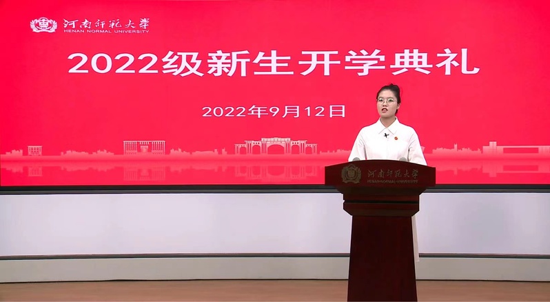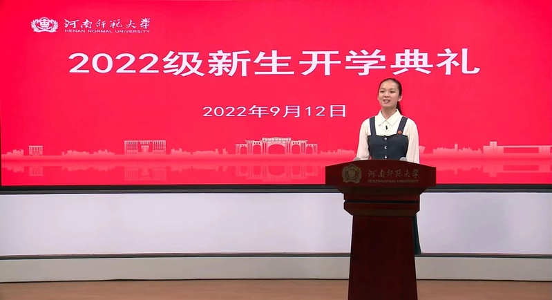 2022级新生代表、教育学部学生喻丹代表全体新生郑重承诺:必将坚定信念,勤学广识,以青春之名续写“师大故事”、为人生之灿烂蓄势、为祖国之强盛聚能,用青春奋斗成就人生华章。