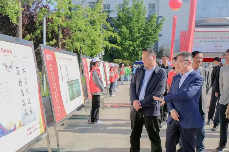 马治军同与会嘉宾还到展览区观看各学院(部)学生优秀书法作品展,到创作区观摩指导选手比赛。赛后,参赛选手相互交流比赛心得、分享创作经验,纷纷表示受益匪浅。