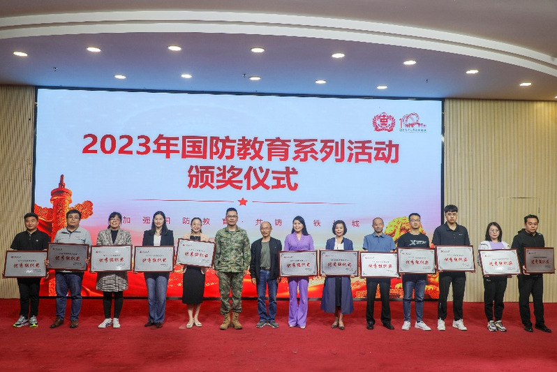 在颁奖环节,赵焕兴为获得轻武器射击比赛获奖学生代表颁发证书;寇玉鹏为获得知识竞赛优胜学院颁发奖牌;熊春晖和彭富旗共同为获得国防教育系列活动优秀组织奖的12个学院(部)颁发奖牌。