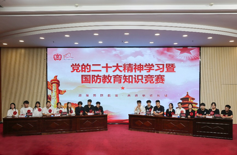 国防教育知识竞赛分为初赛、复赛和决赛,全校24个学院(部)经激烈角逐,6支学院代表队进入决赛。竞赛题目紧扣党的二十大精神、习近平强军思想等内容设置,分为必答题、抢答题和风险题等环节,现场竞赛你追我赶、精彩纷呈,最终社会事业学院获得一等奖,体育学院、音乐舞蹈学院获得二等奖,政治与公共管理学院、国际教育学院、计算机与信息工程学院获得三等奖。国防教育教研室、人民武装部彭富旗老师进行了精彩点评。